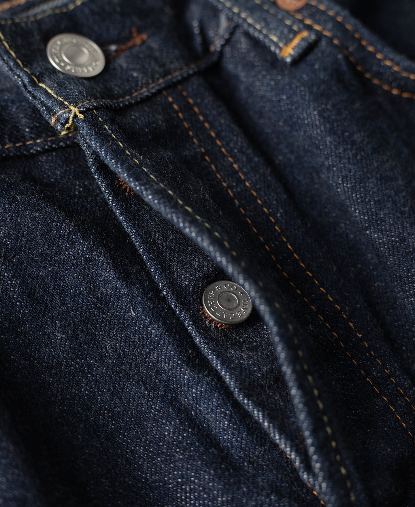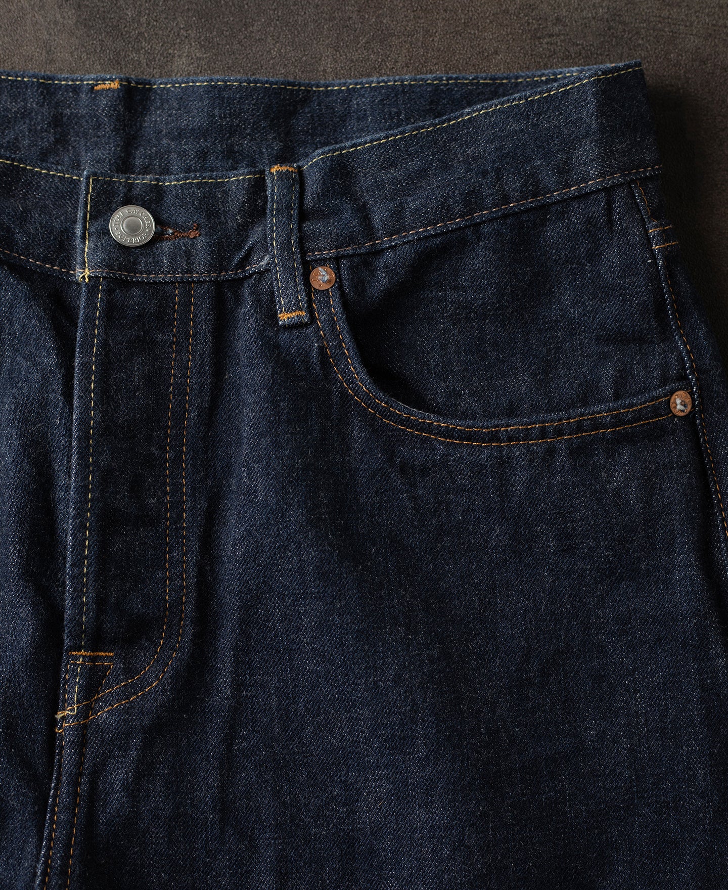 Inspired by the iconic 1955 silhouette. Influenced by mid-century Hollywood rebels like James Dean, denim in the 1950s transitioned from rugged workwear to a symbol of youthful defiance and everyday style. The Jeans cut introduced a looser, “anti-fit” shape—relaxed through the seat and thigh, with a slightly wider leg—reflecting a shift toward comfort and durability. While replacing the hidden back-pocket rivets and zinc buttons with bartack reinforcements is a more refined detail drawn from the 1966 edition.