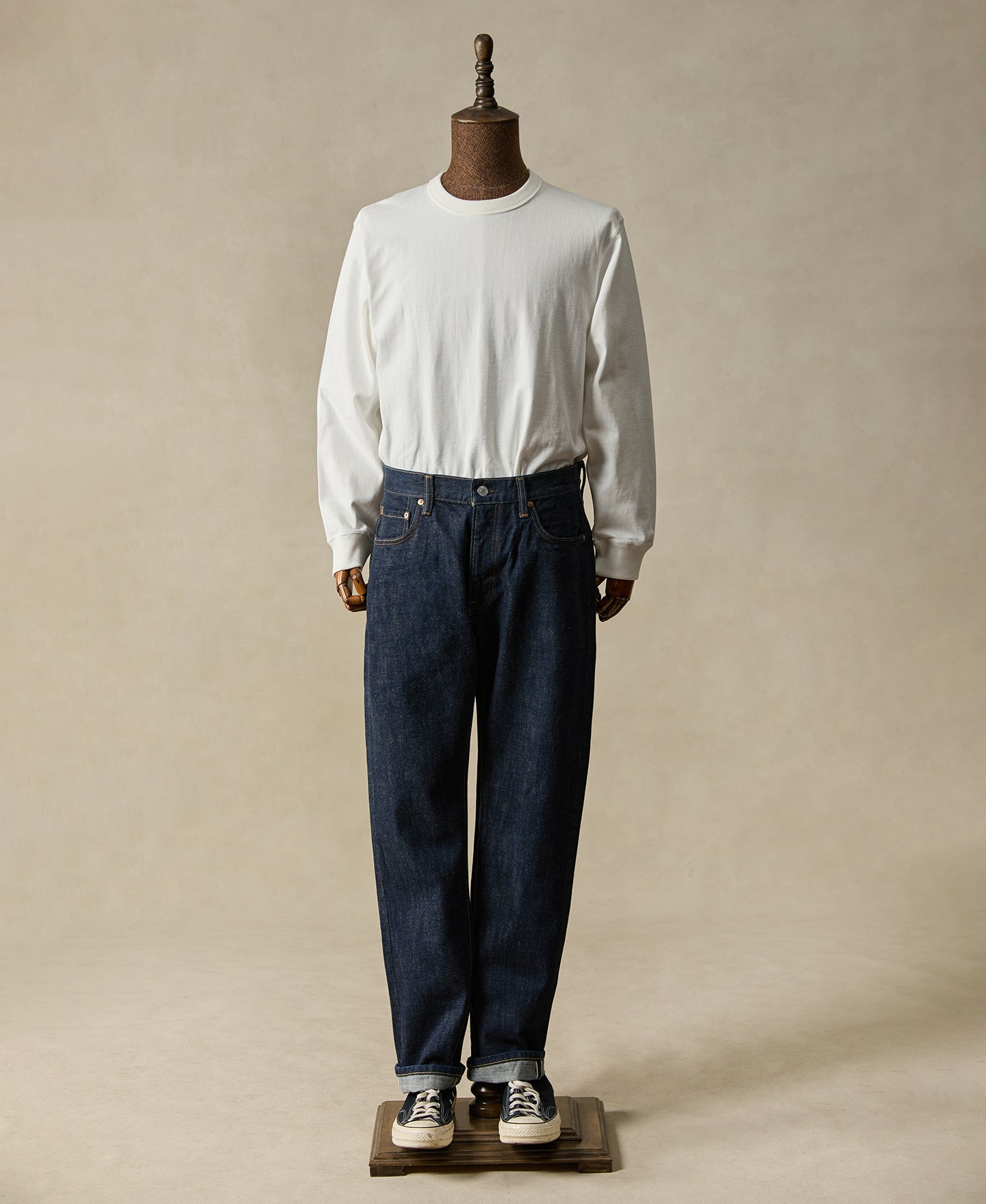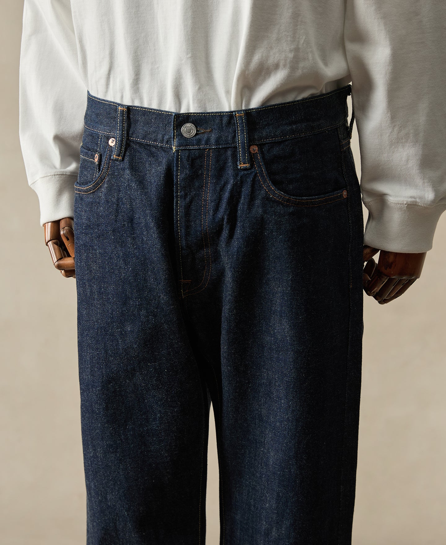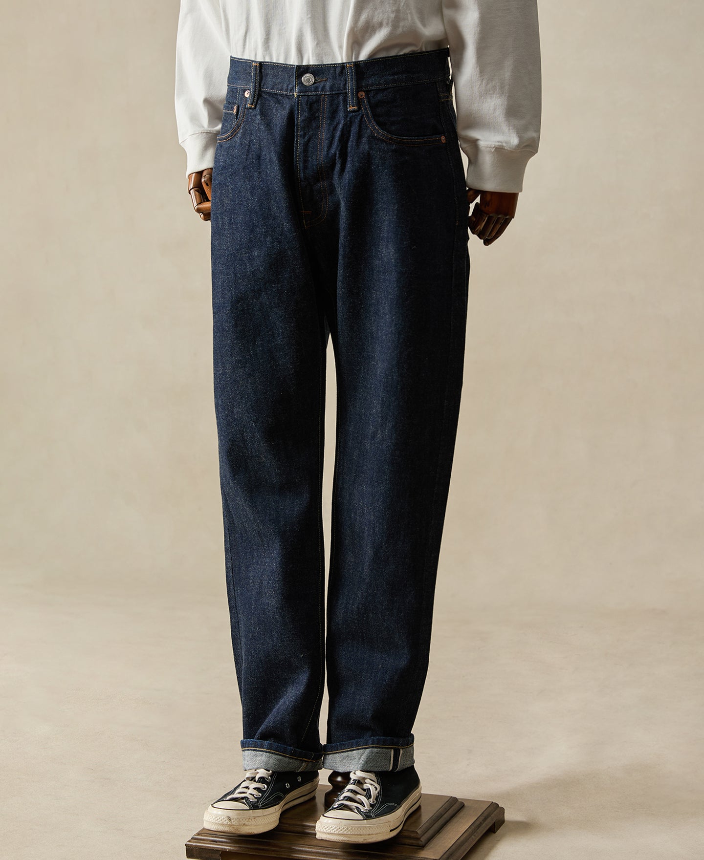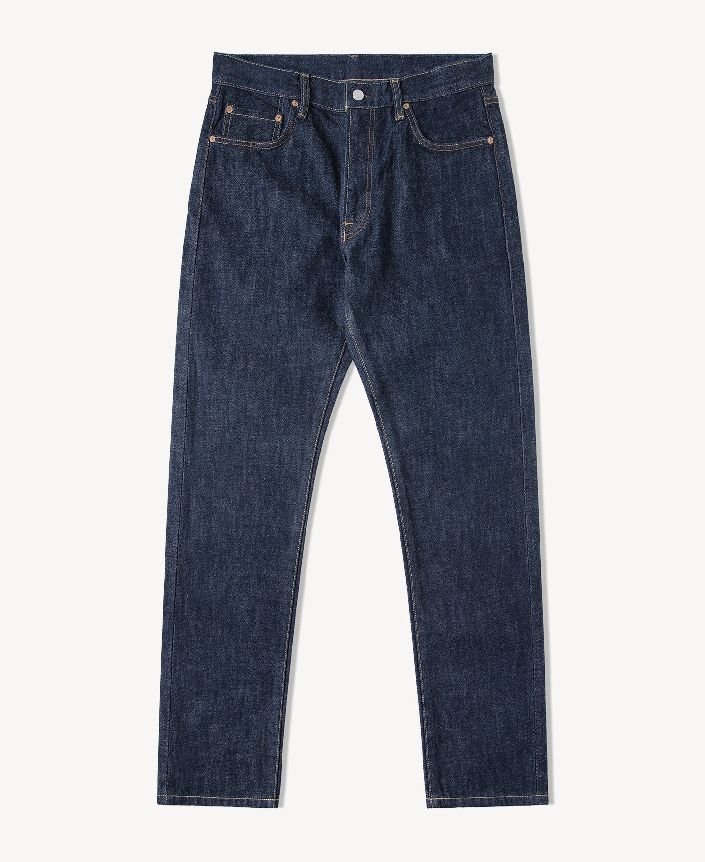 Inspired by 1950s, the denim style started leaning more streamlined and easy-on. This pair captures that mid-century shift in attitude. The tailored taper sits cleaner through the leg than our roomier 1955 fit.