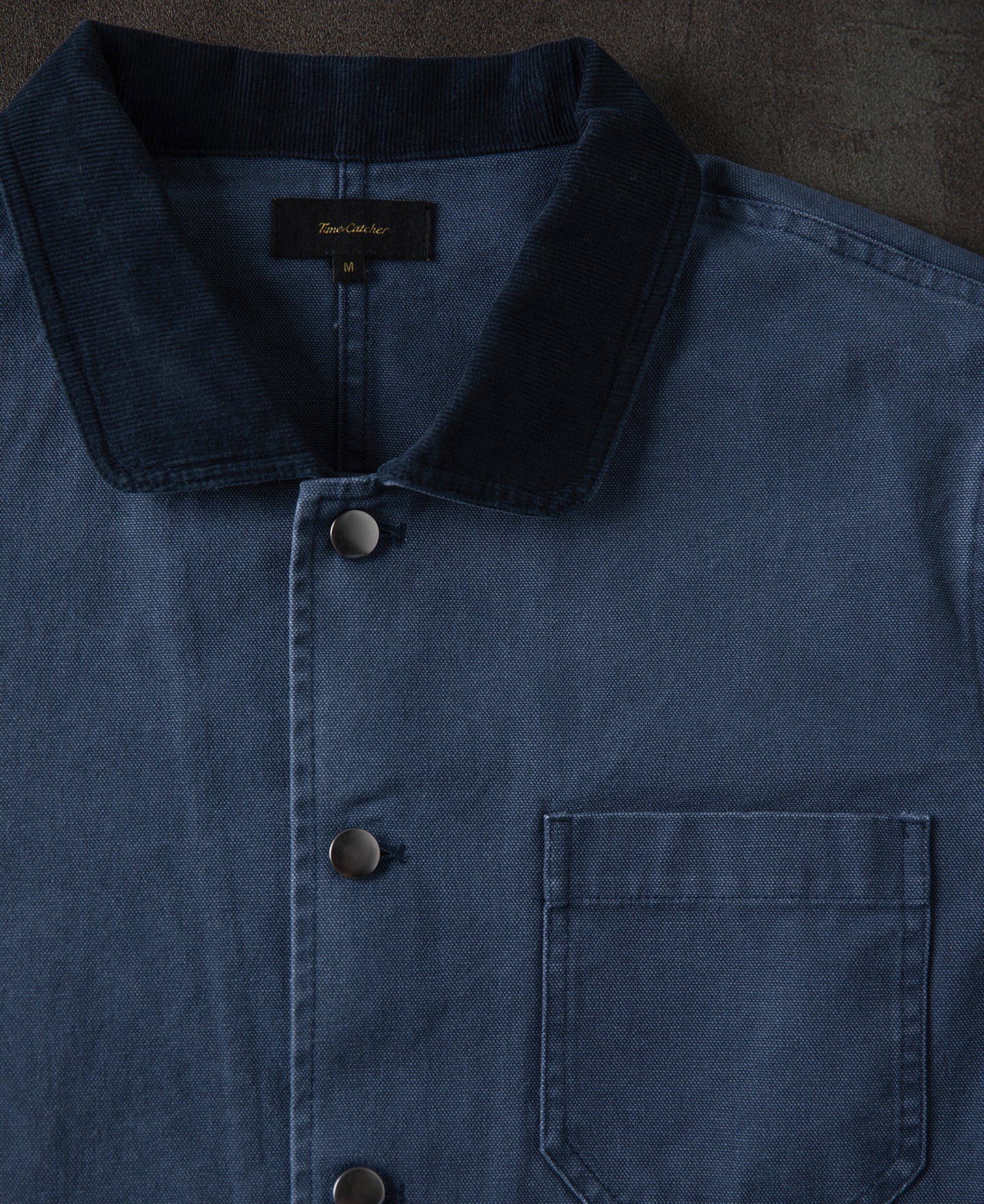 Inspired by 1930s workwear, this chore jacket is a timeless essential. Crafted from 400GSM heavyweight canvas in classic French workwear blue, with a contrast navy corduroy collar and a modern regular fit.