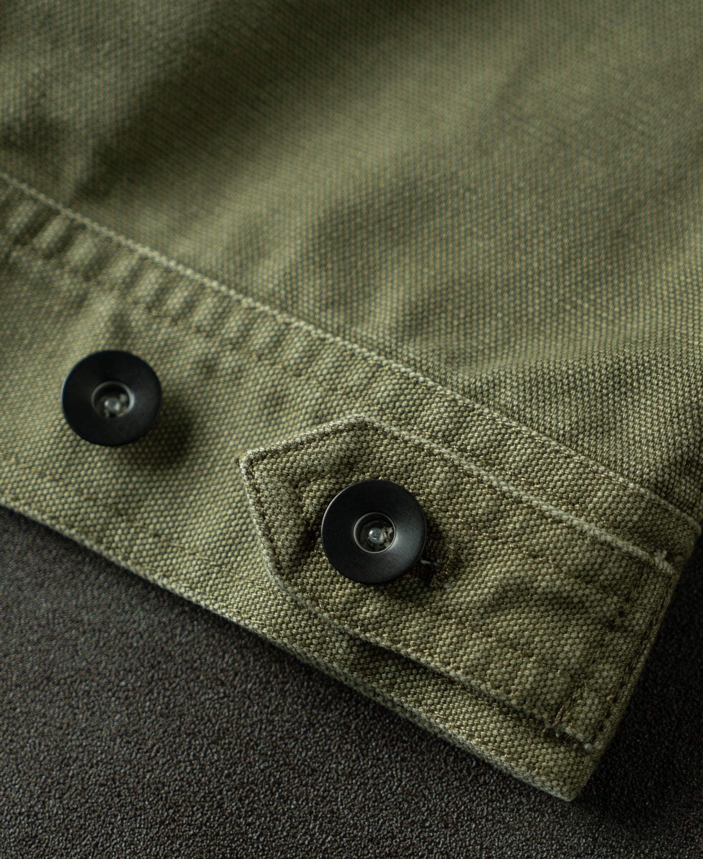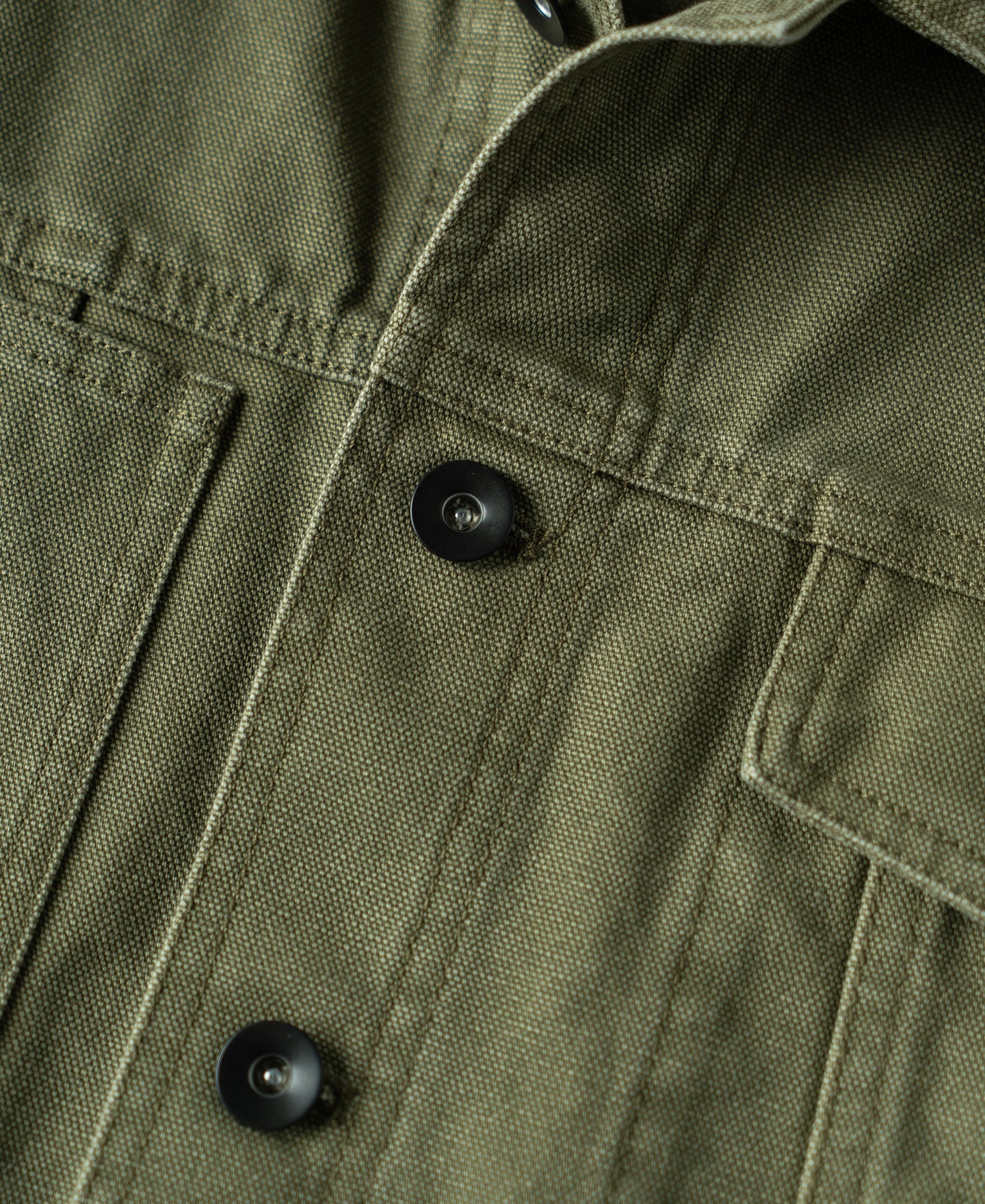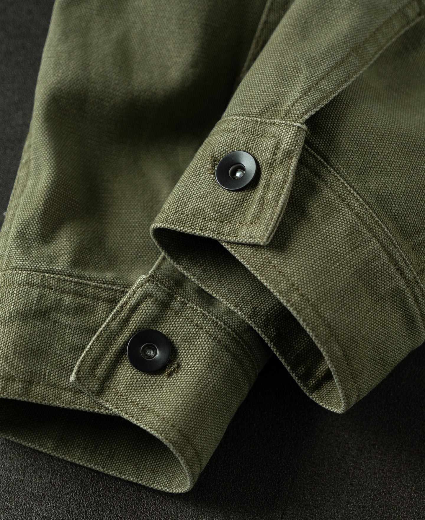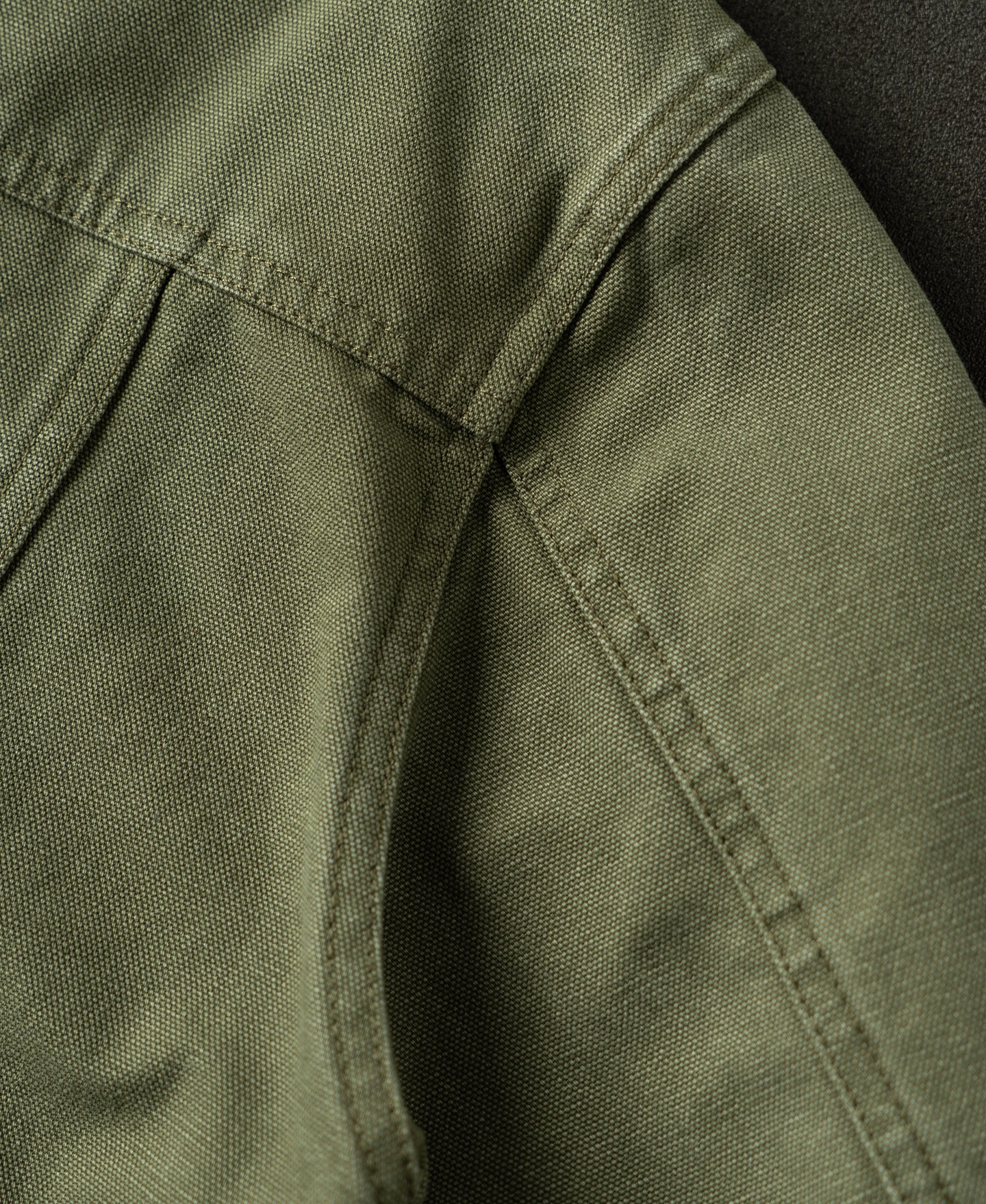 Inspired by vintage Timber Cruiser jackets, this piece blends classic workwear heritage with modern versatility. Crafted from 400 GSM heavy pebbled canvas for durability, warmth and structure. The short-cut regular fit and garment wash provide easy movement and a broken-in softness.