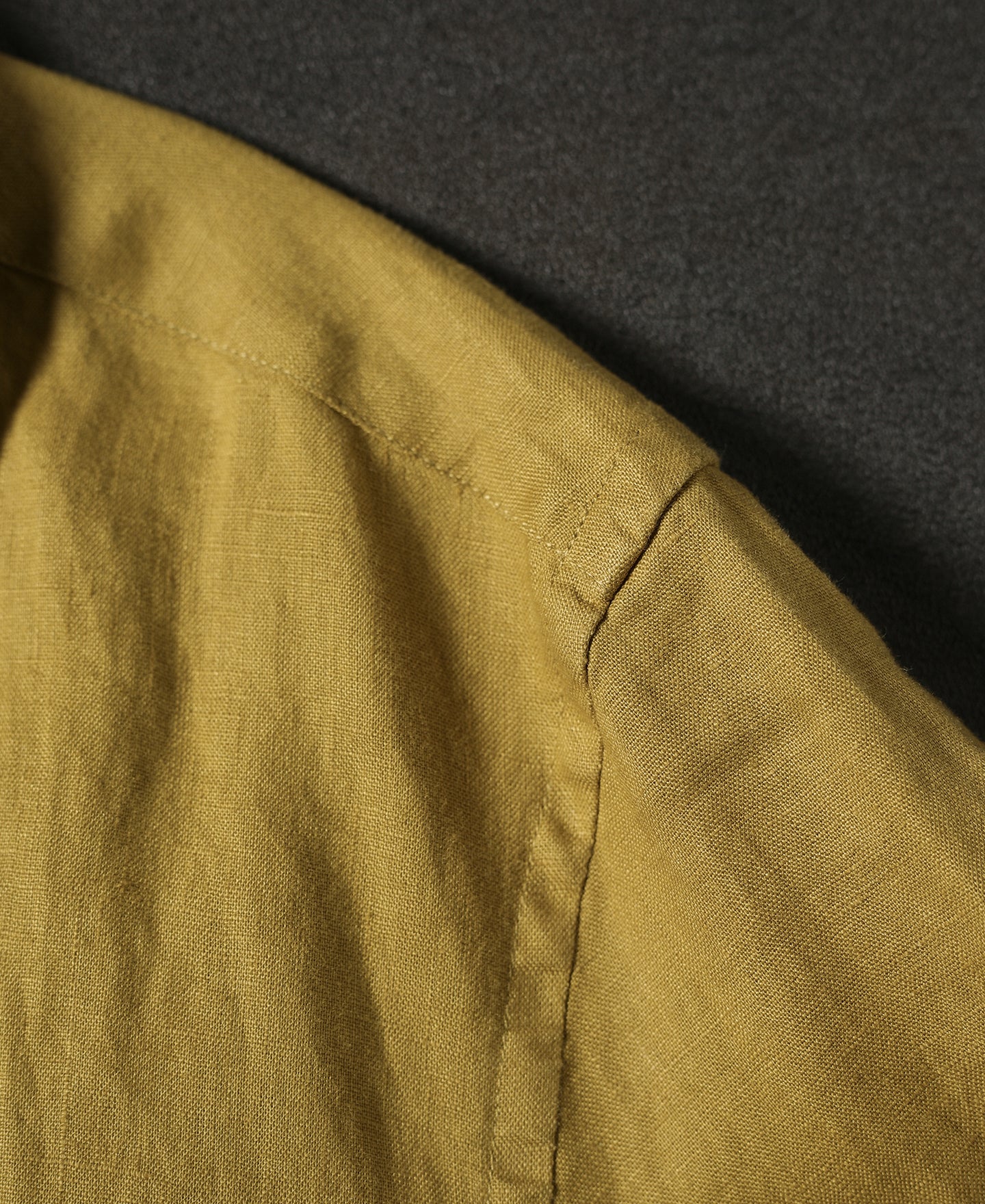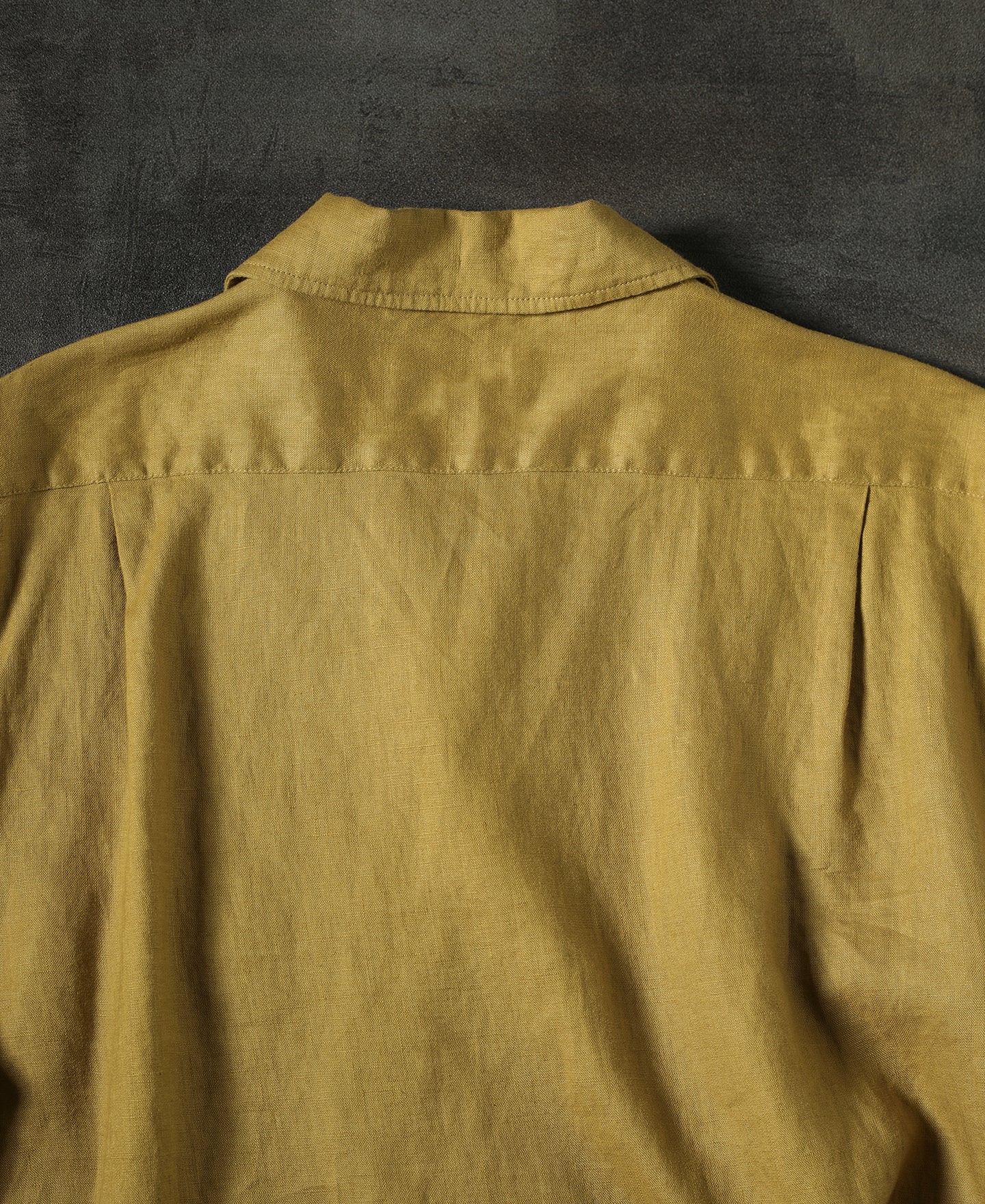 This long-sleeve shirt is inspired by the 1950s Italian collar shirt style. It features a regular fit complemented by a classic one-piece collar. Crafted from linen, it offers both comfort and a natural aesthetic. Shell buttons add a sense of quality, while the reinforced collar ensures stability. The linen fabric feels crisp yet cozy, and its vintage appeal will only grow with wear and washing.