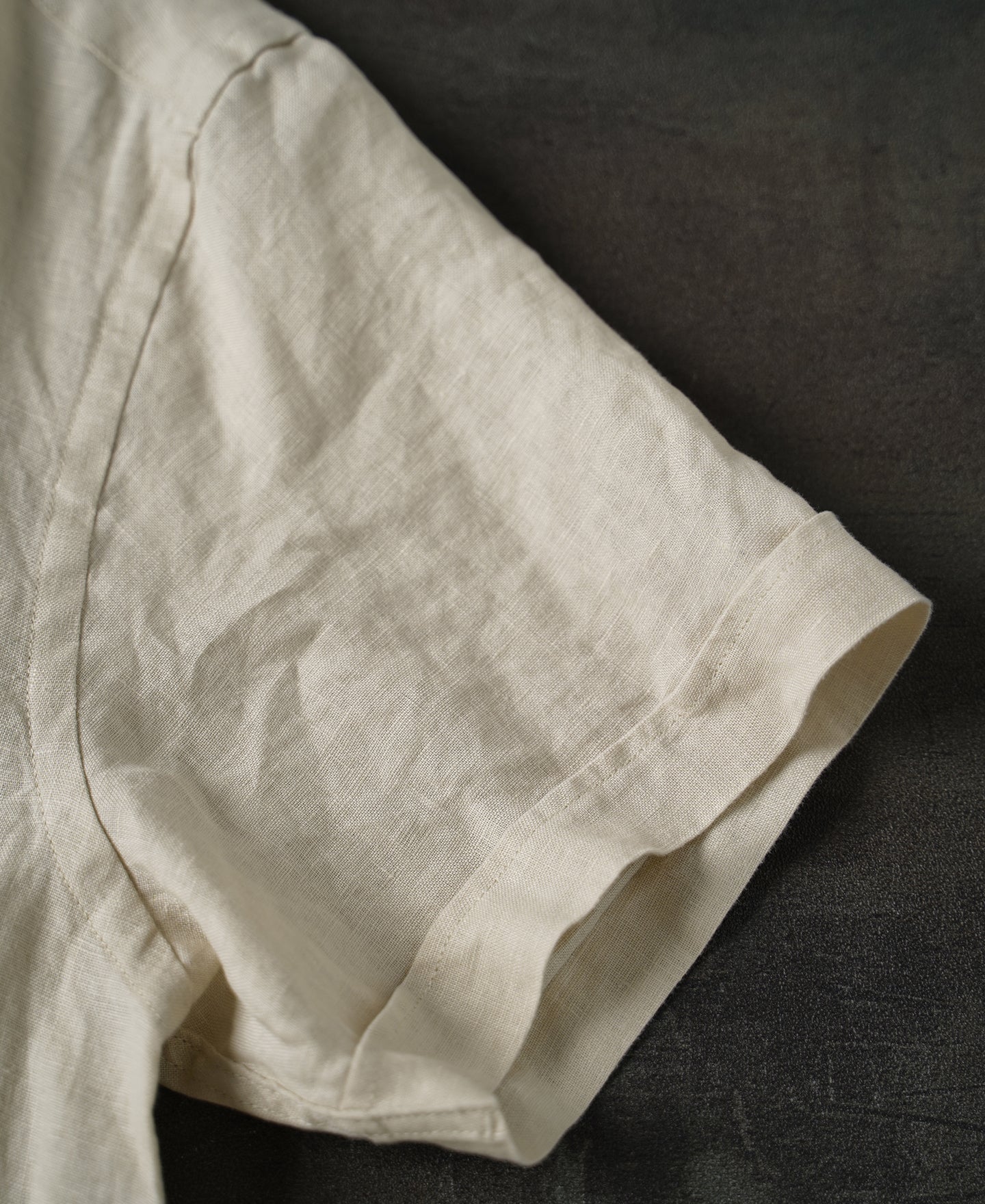This shirt is influenced by the 1950s Italian collar shirt, a regular fit with a classic one piece collar. We used linen fabric for its comfort and natural style, added dark shell buttons for for a harmonious touch, and reinforced the collar for more stability. The linen has a crisp feel that is also cozy, and it will become more vintage-looking with wear and wash.