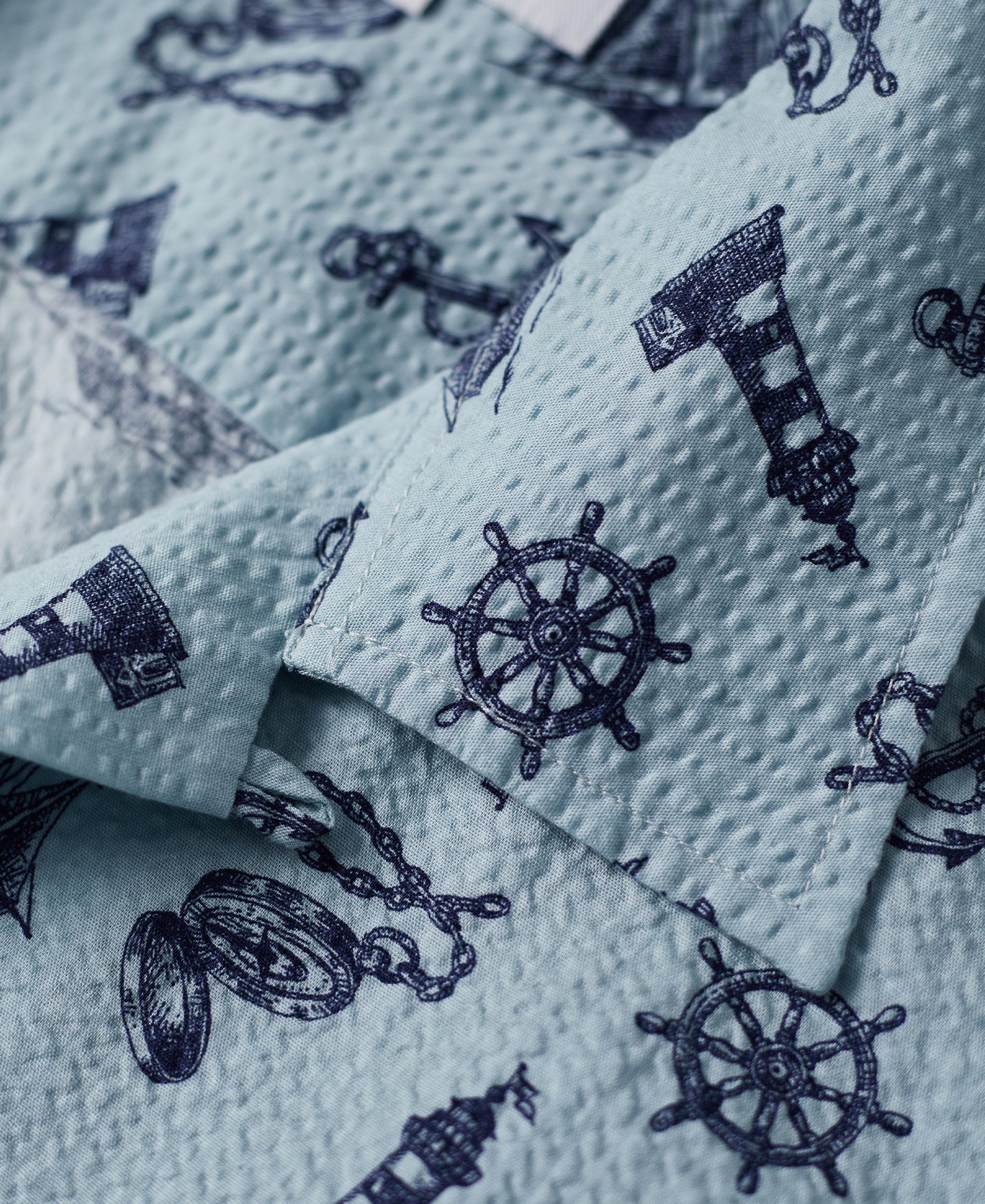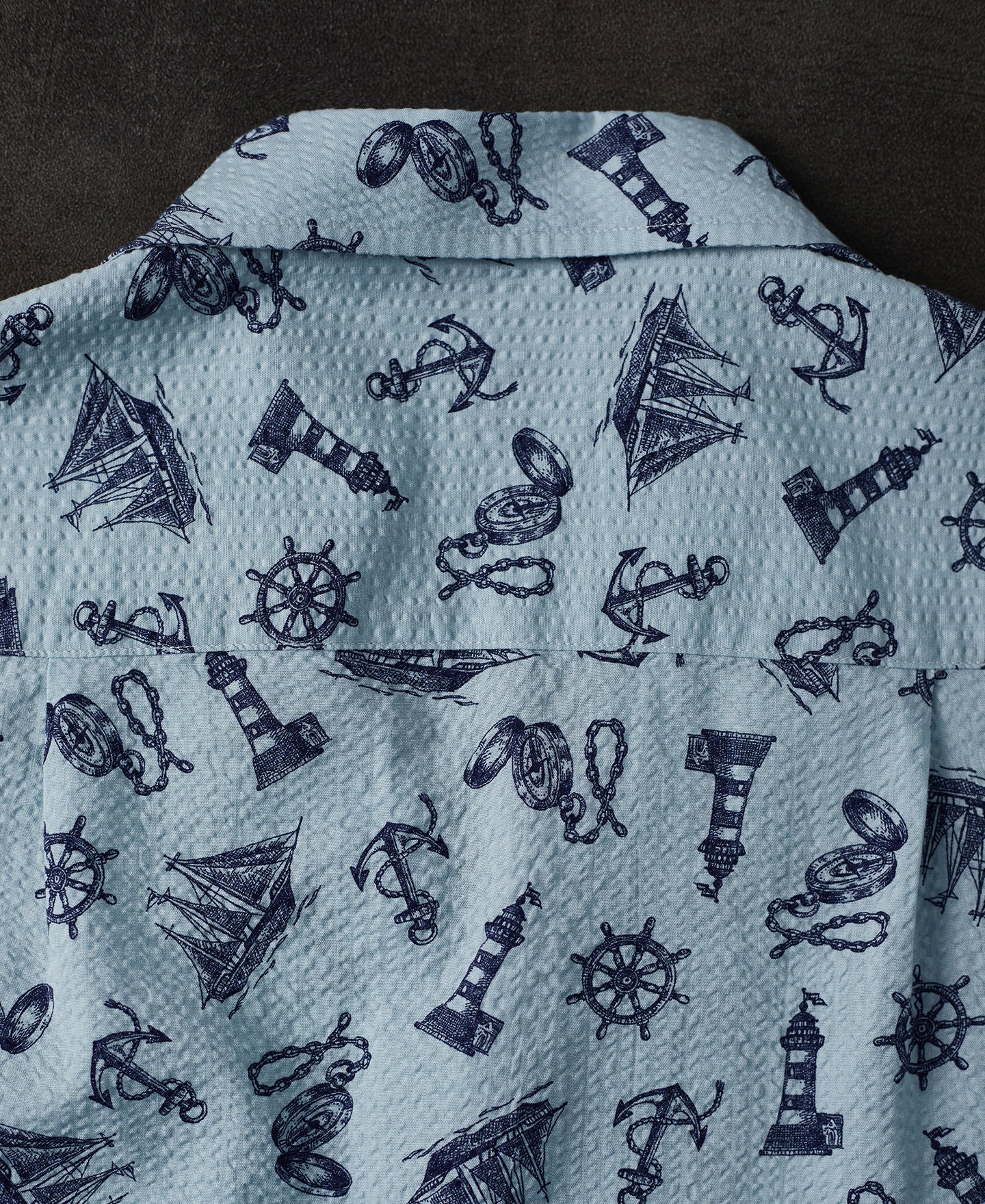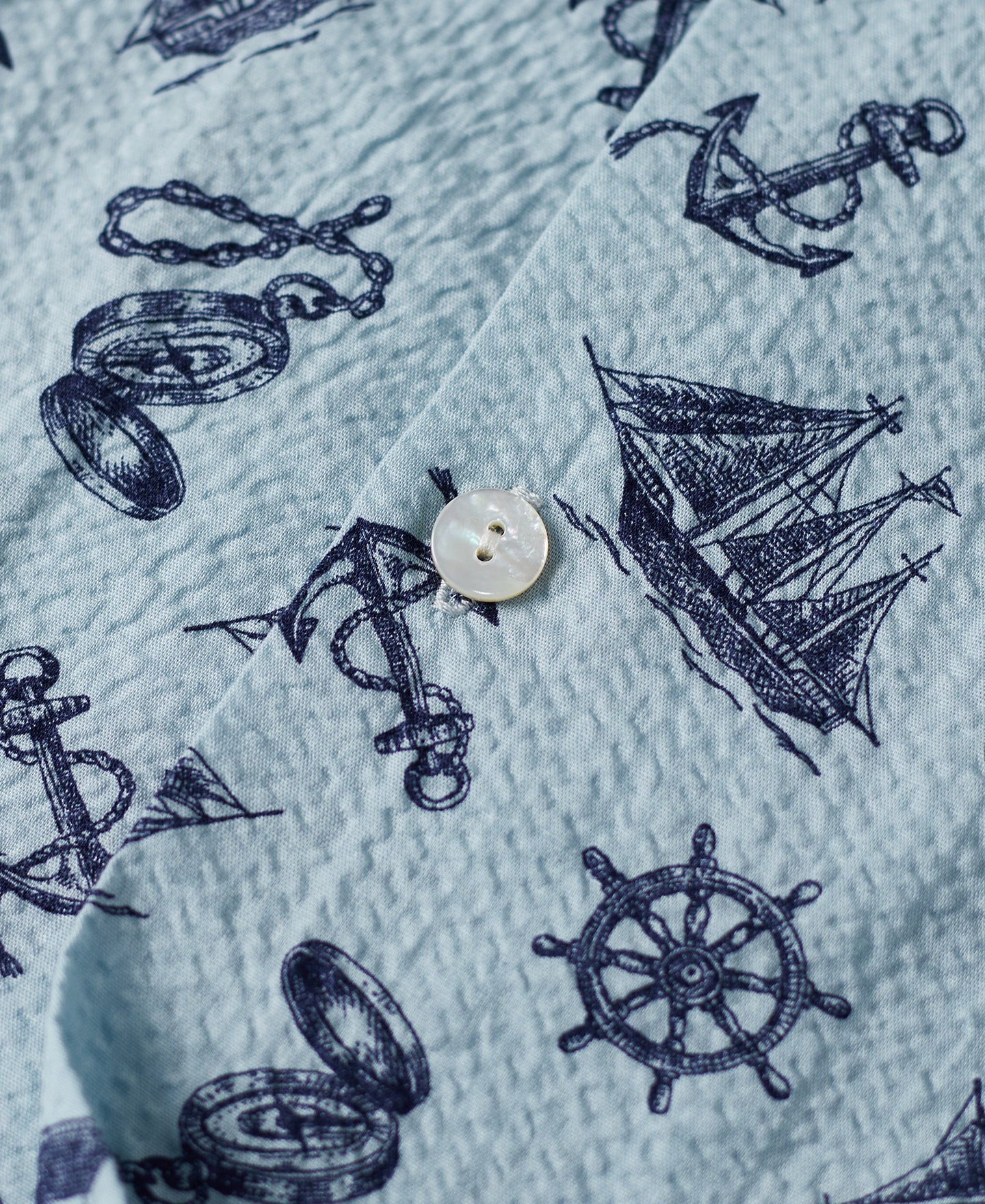 Made from Japanese seersucker fabric, this shirt is exceptionally breathable and comfortable, offering a rich texture. Featuring nautical-themed prints, it is the perfect choice for stylish summer wear.