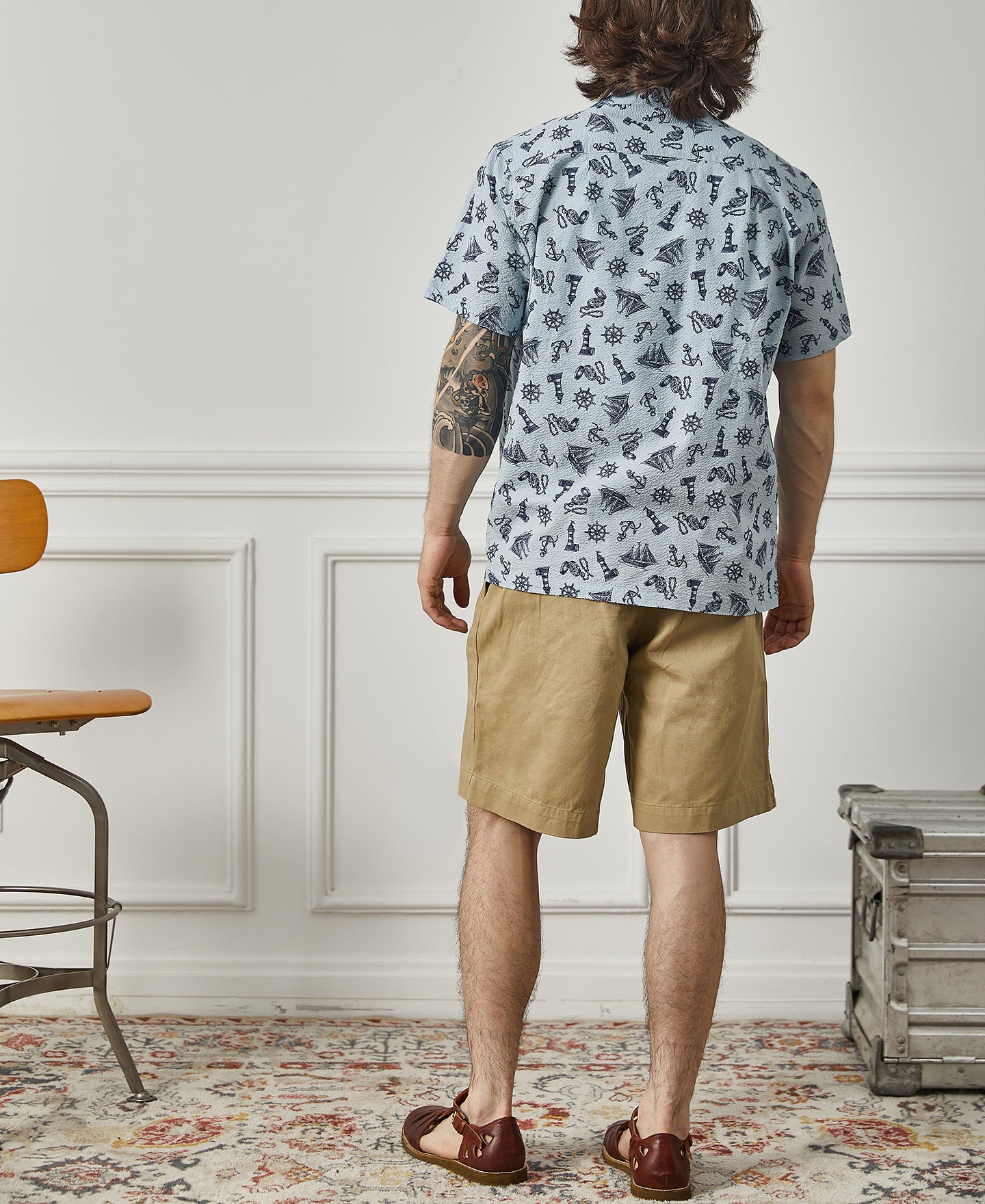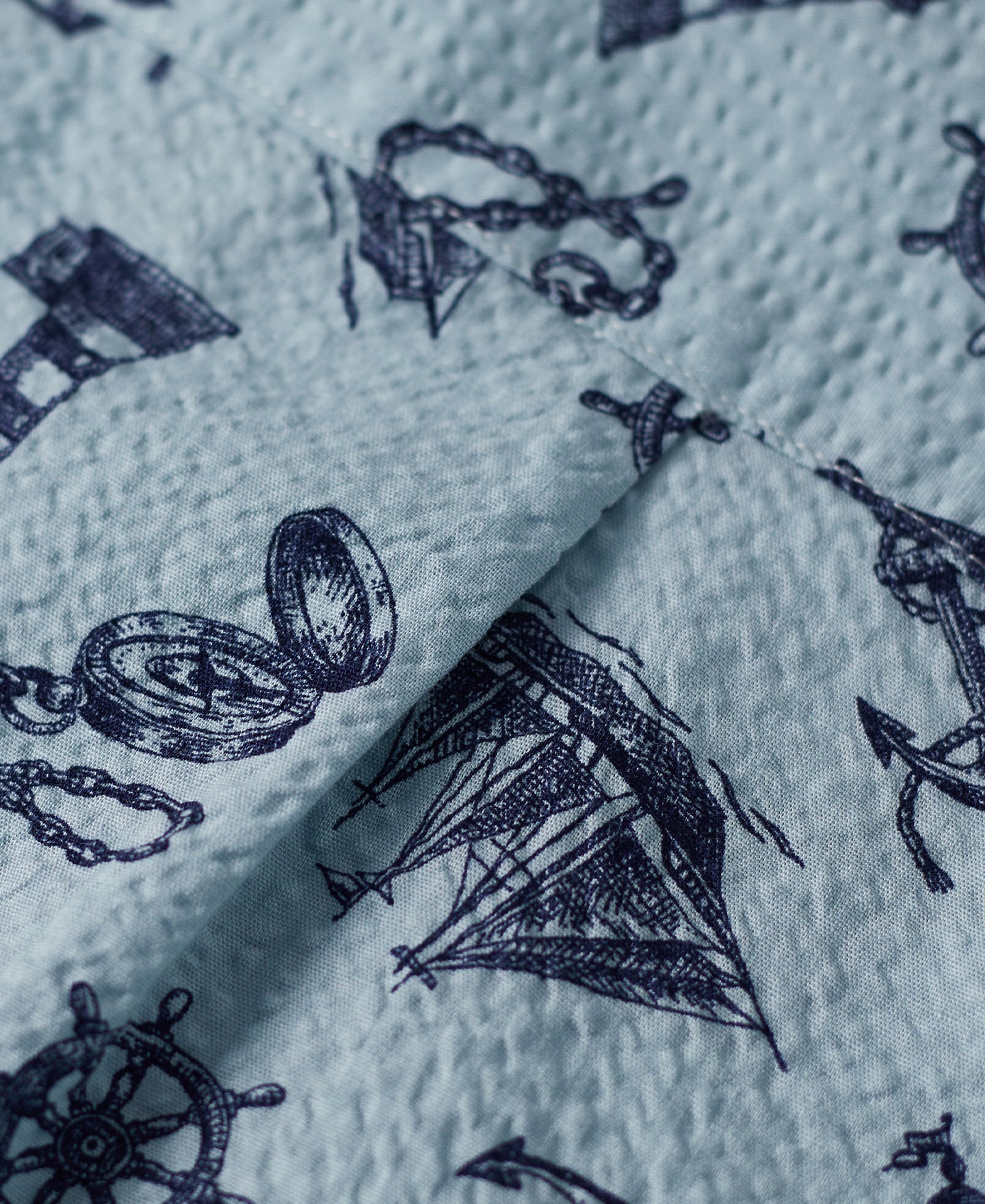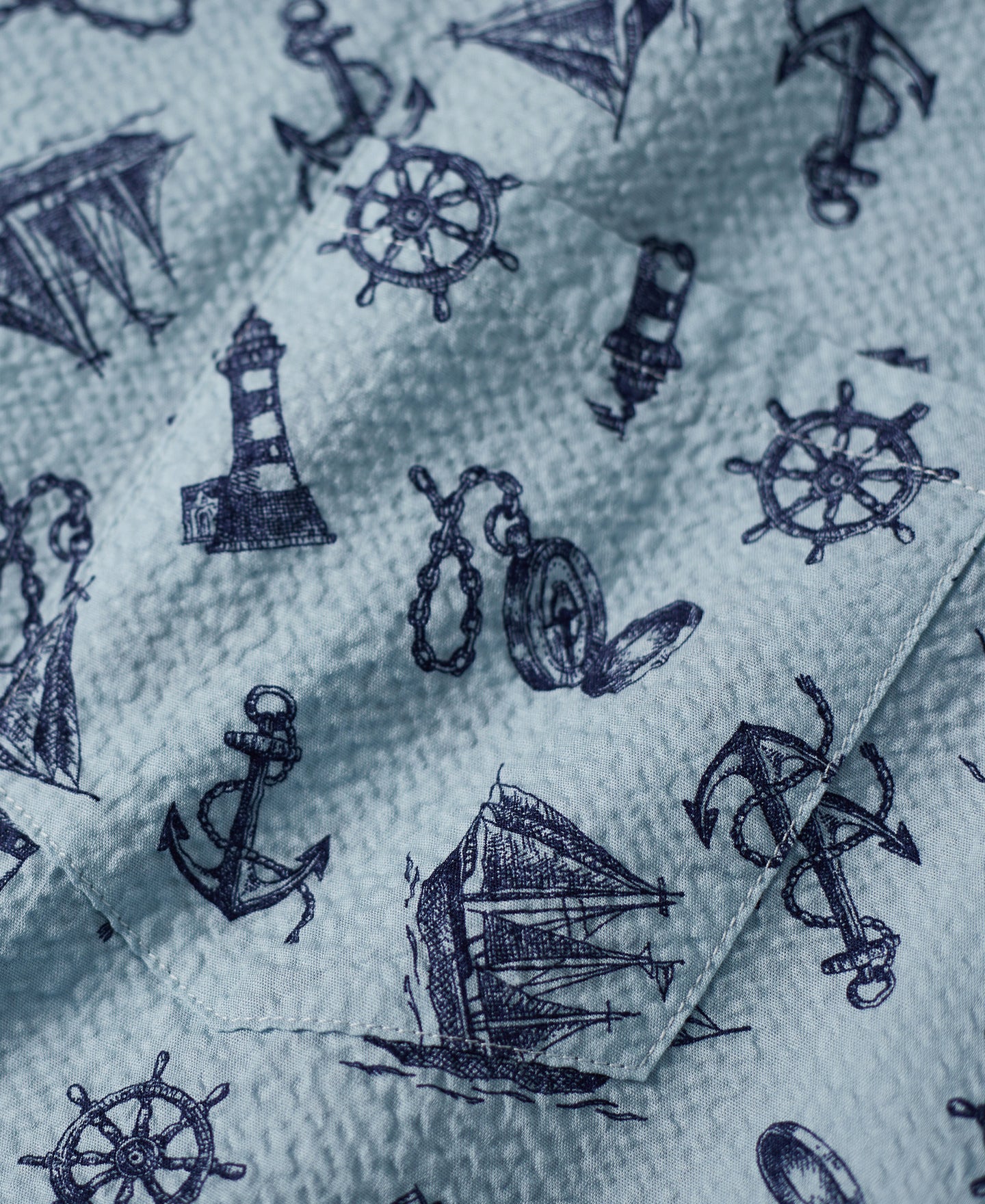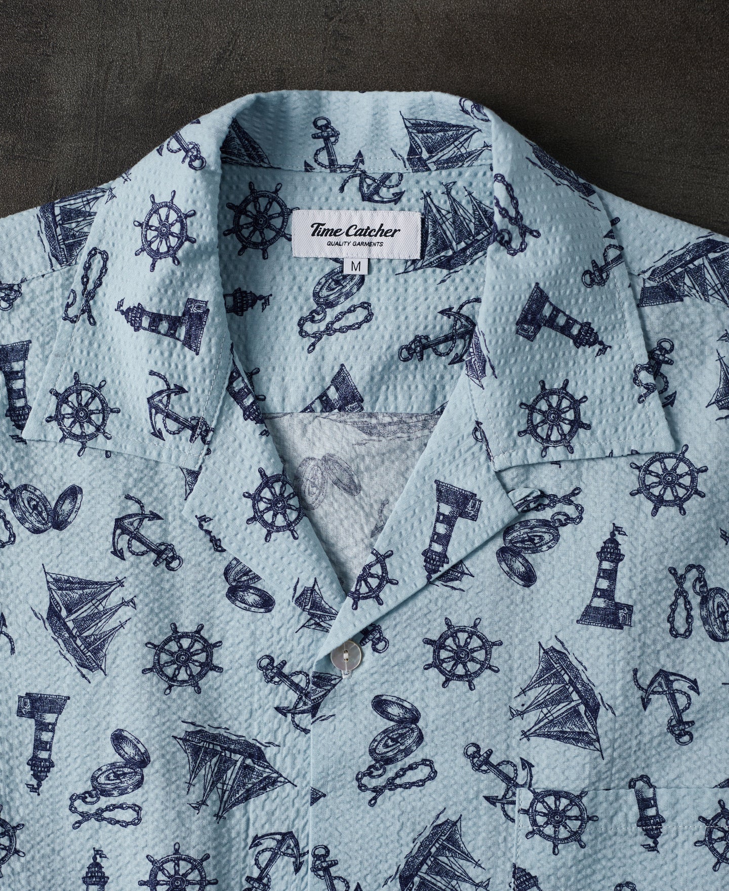 Made from Japanese seersucker fabric, this shirt is exceptionally breathable and comfortable, offering a rich texture. Featuring nautical-themed prints, it is the perfect choice for stylish summer wear.