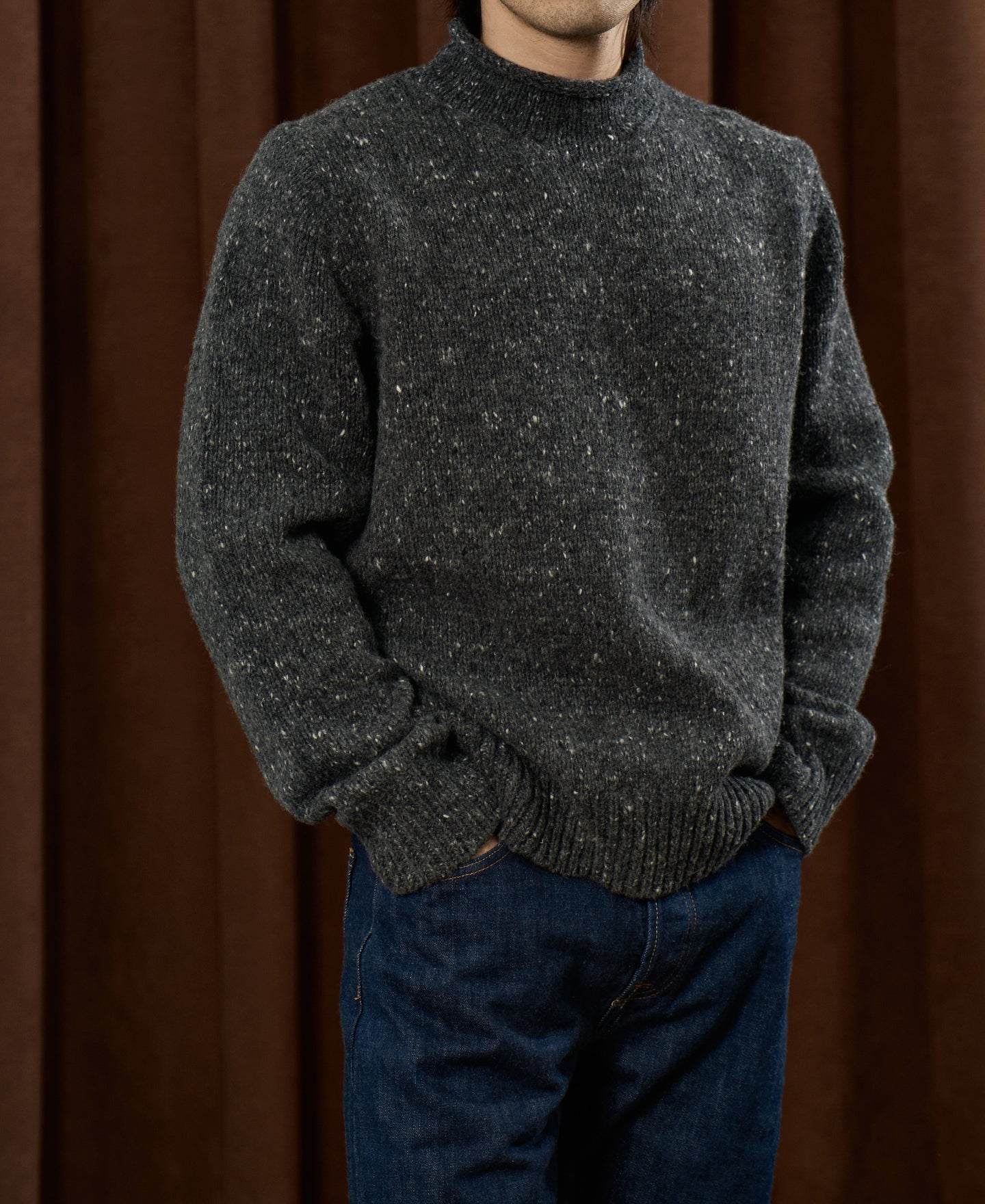 Inspired by classic fishermen’s sweaters from the early 20th century, this piece traces its origins to the maritime traditions where knitwear served as essential protection against wind and cold at sea. The style later evolved into a timeless staple embraced by casual and Ivy style alike.