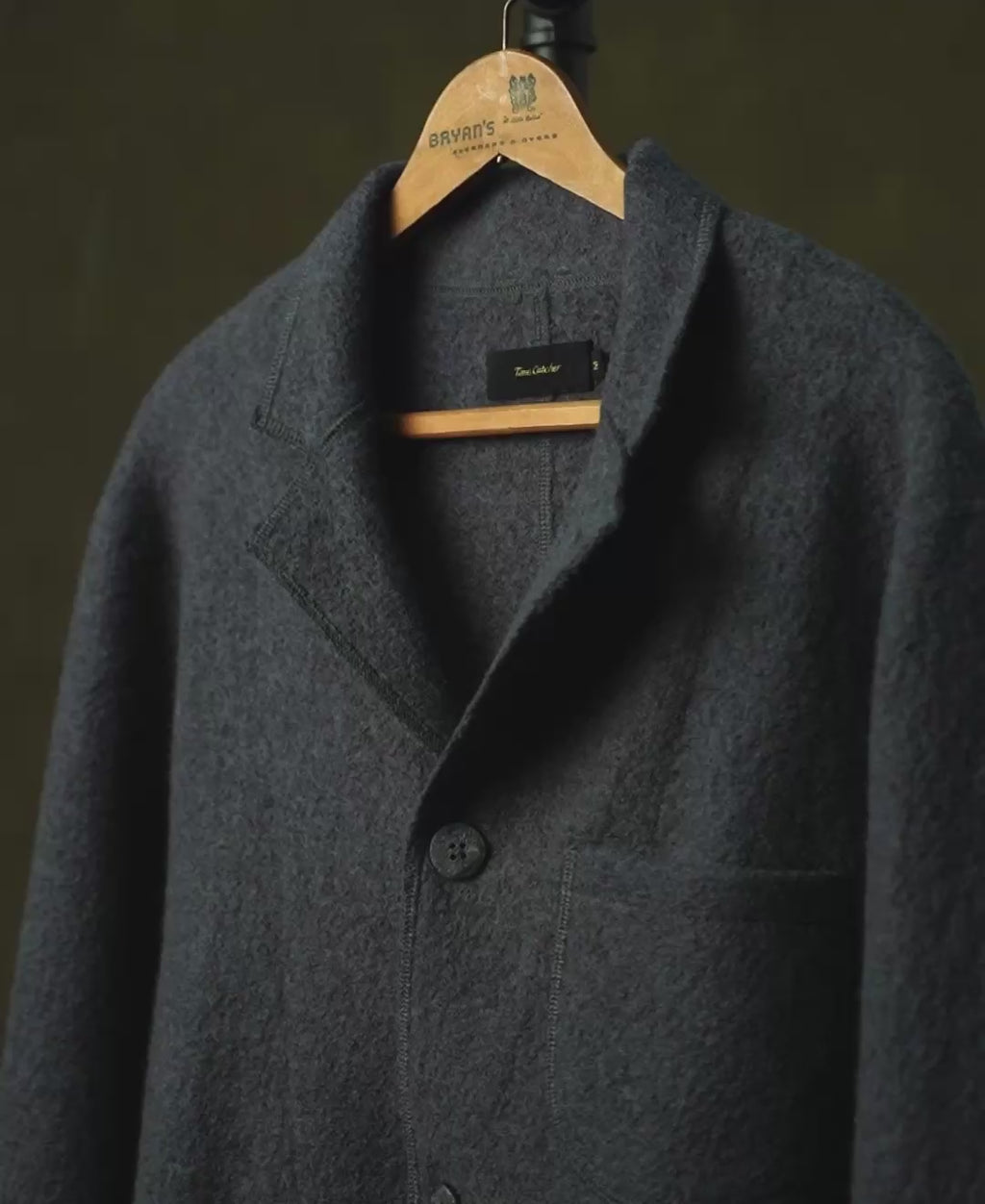 Inspired by the classic chore coat, this piece features a classic fit. Made from 360 GSM felted wool, 100% wool. This offers impressive warmth and durability. Features three front patch pockets that provide practical, everyday utility. A relaxed yet refined texture that elevates both casual and dressed-up layering.