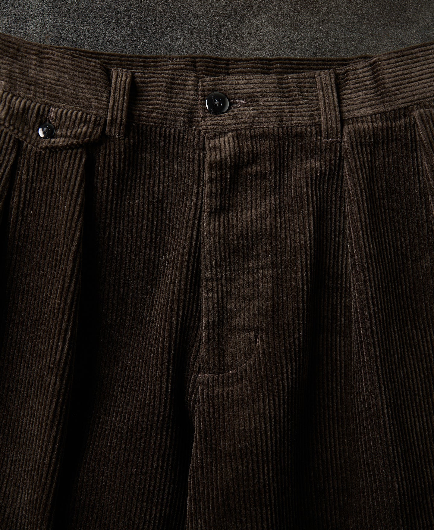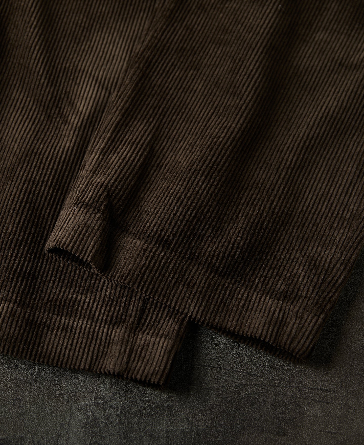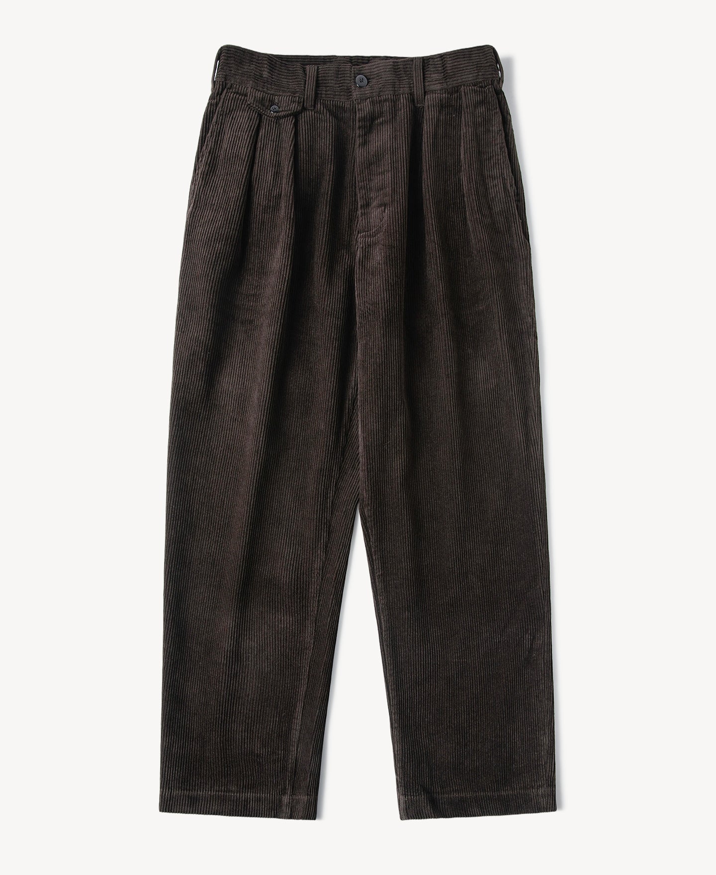 Inspired by 1960s European work trousers, this pair features a double-pleated design with a relaxed wide-leg and mid-high rise fit. Slightly refined for a more modern silhouette and everyday versatility, the trousers are crafted from heavyweight cotton corduroy. Garment-washed for a soft hand and naturally vintage appearance, they combine old-world charm with contemporary wearability.