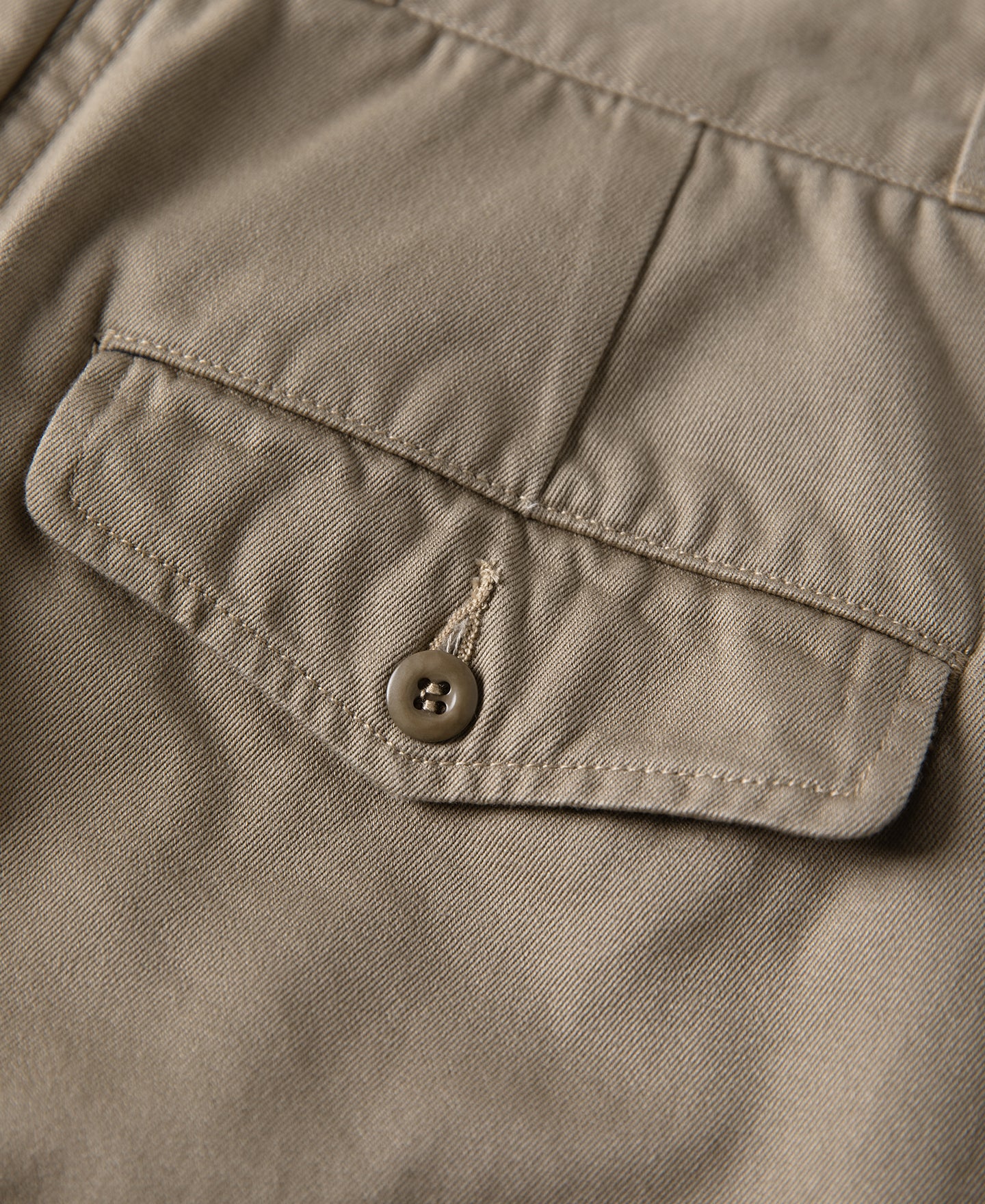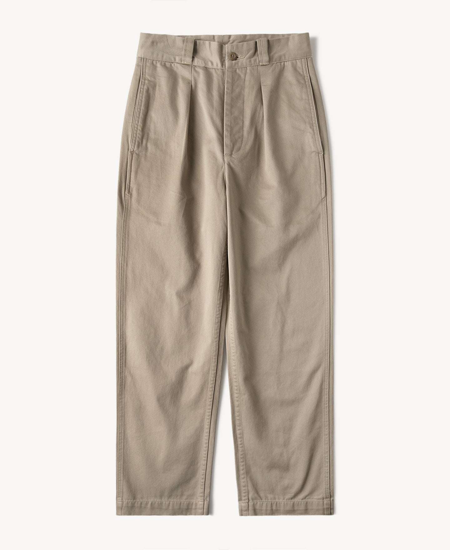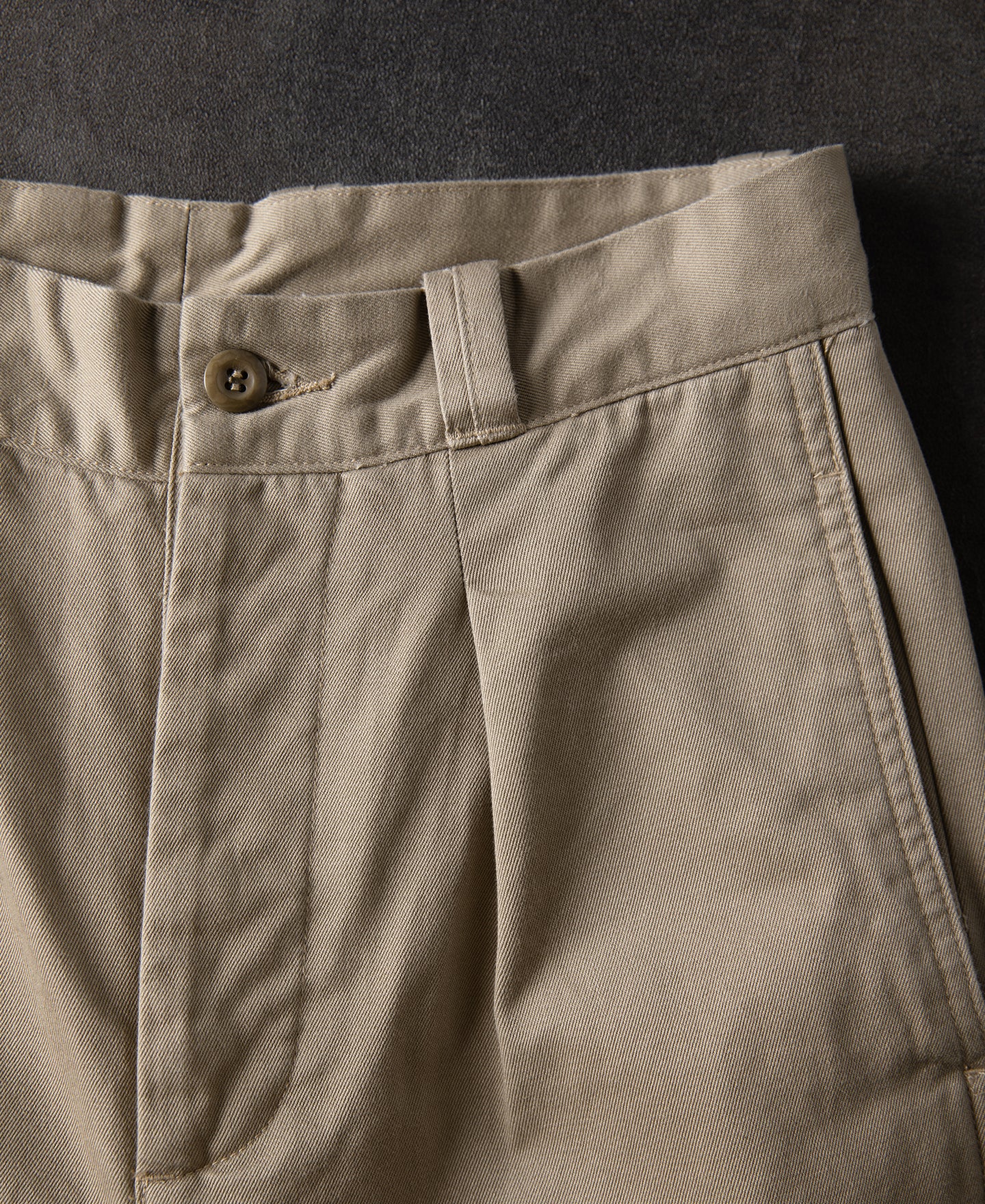 This pair reproduces the rare single-pleated version of the French Army M-1952 Chino Trousers. Crafted from 339 GSM high-density cotton twill fabric, it features a button fly, two side on-seam pockets, and two buttoned pockets at the back. The overall structure presents a high waist and straight leg shape. The design and details of this pair precisely replicate the original version. It has undergone a garment wash to give it a lived-in feel. We stand behind the quality and authenticity of this product.