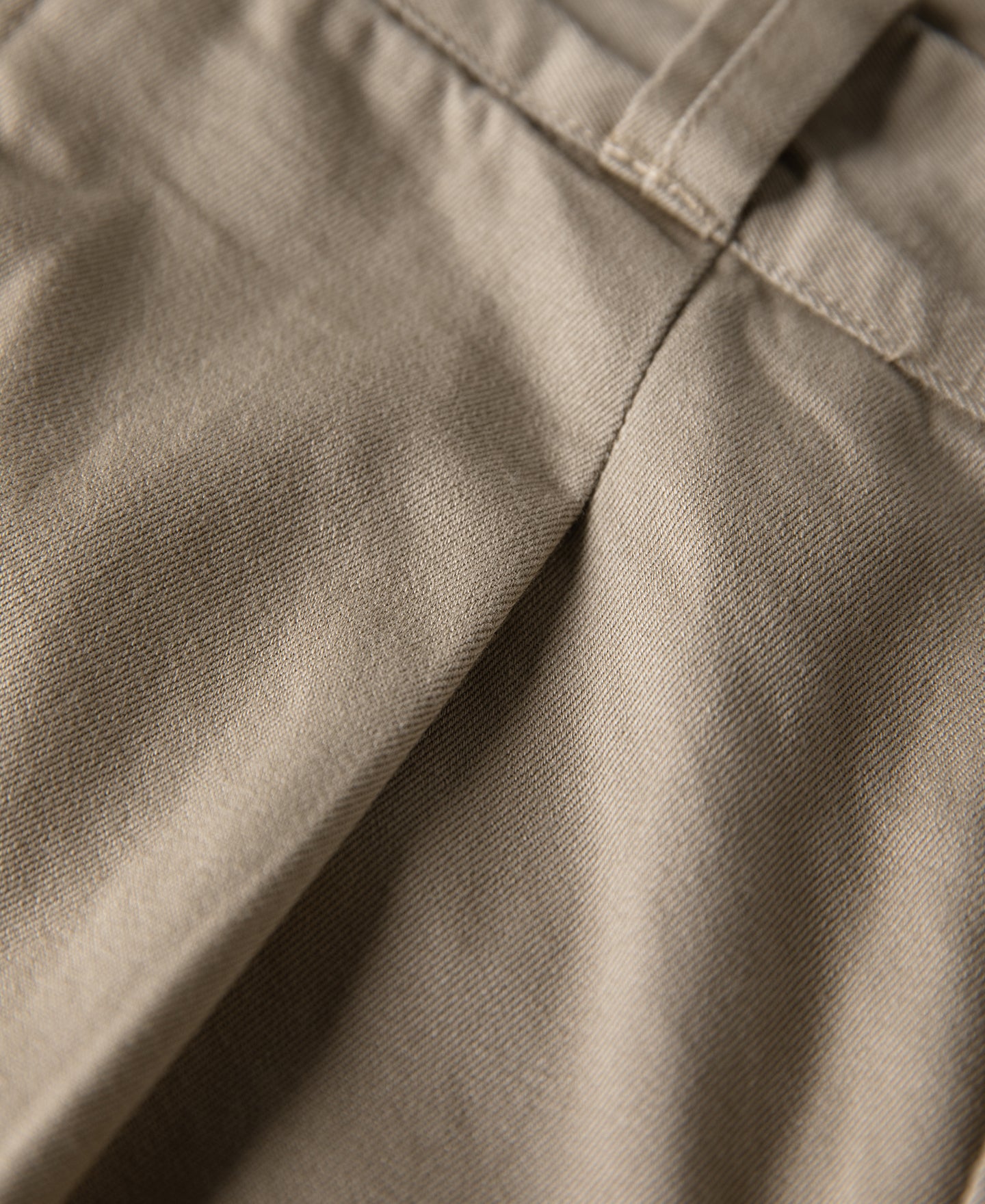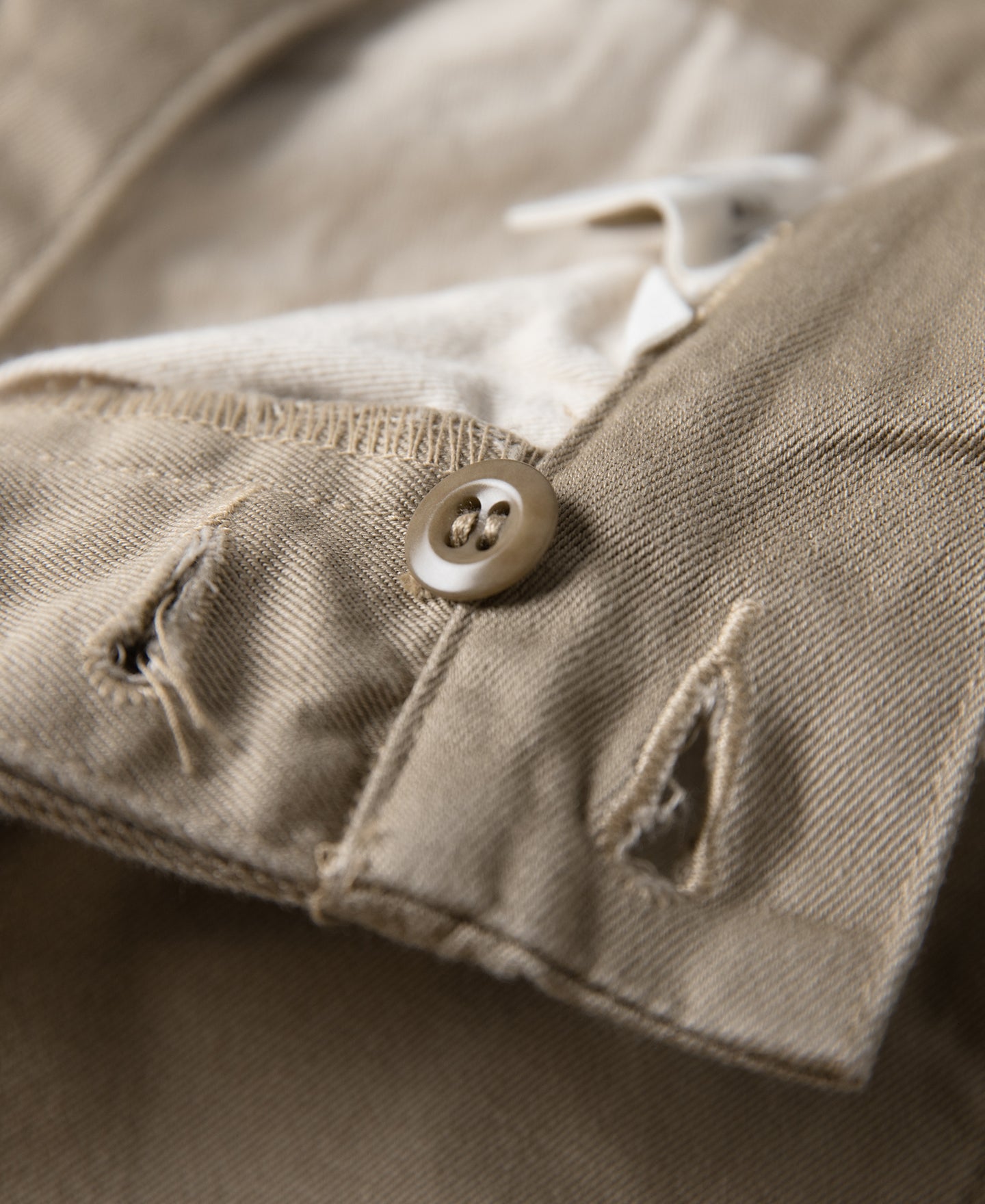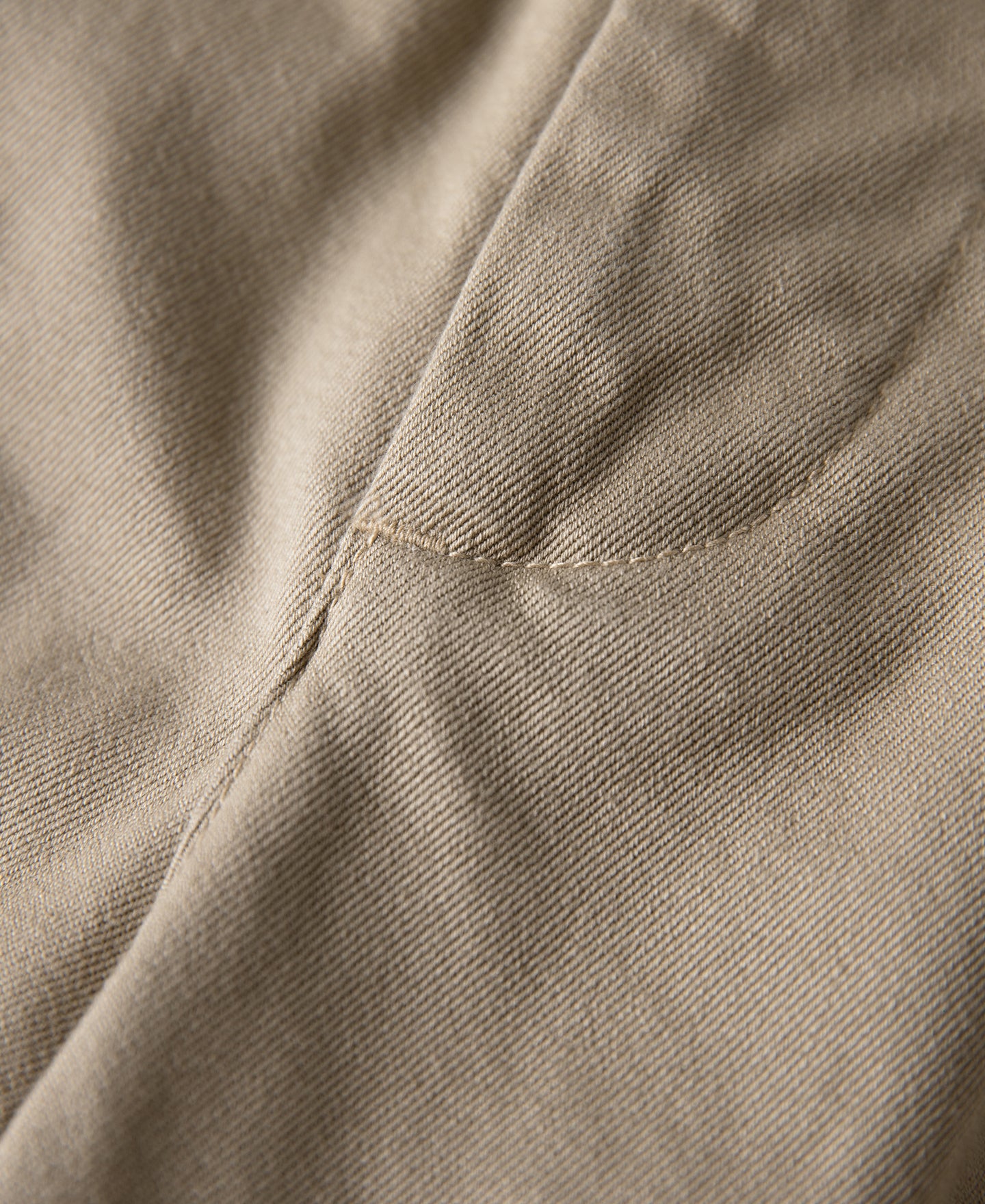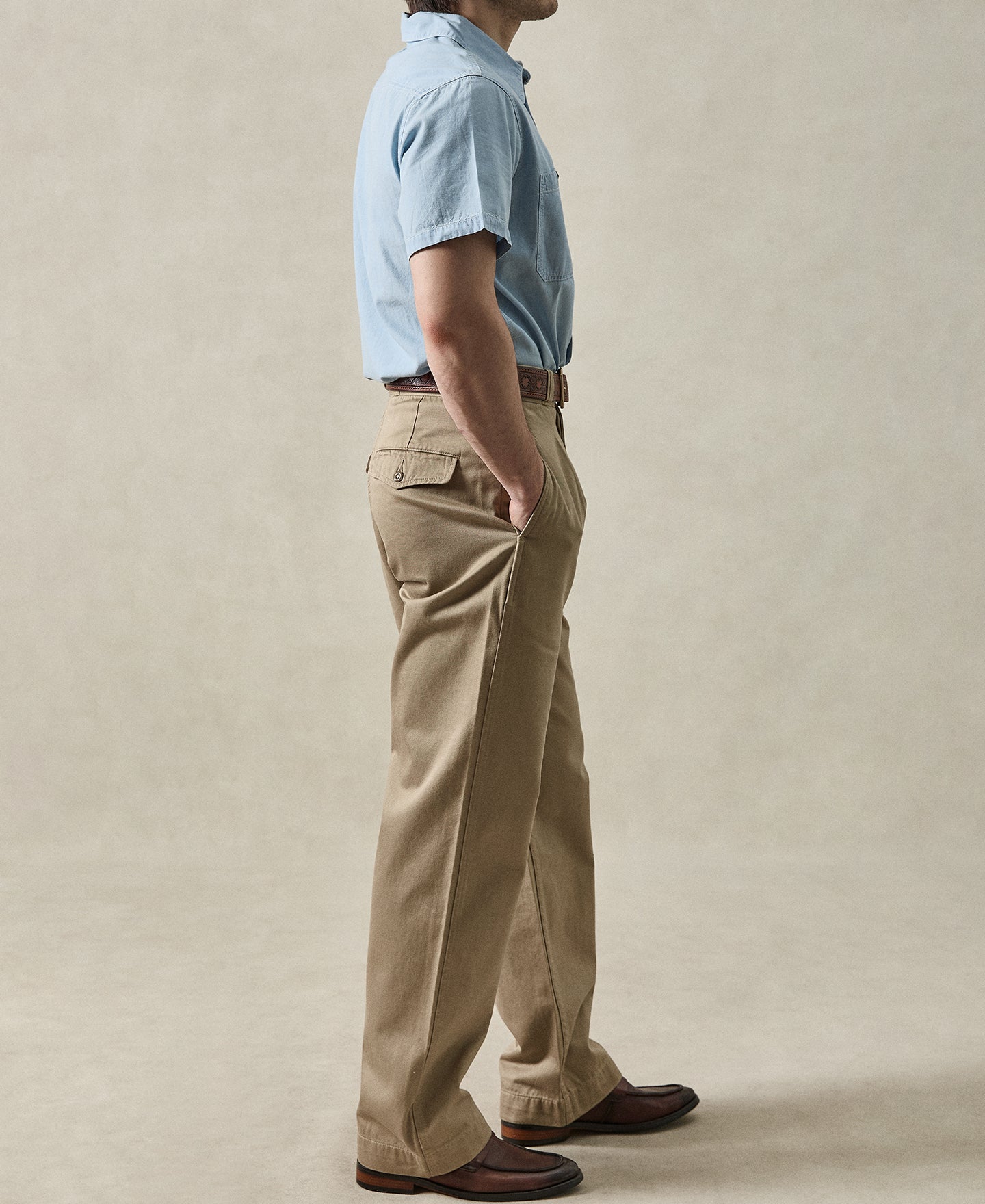 This pair reproduces the rare single-pleated version of the French Army M-1952 Chino Trousers. Crafted from 339 GSM high-density cotton twill fabric, it features a button fly, two side on-seam pockets, and two buttoned pockets at the back. The overall structure presents a high waist and straight leg shape. The design and details of this pair precisely replicate the original version. It has undergone a garment wash to give it a lived-in feel. We stand behind the quality and authenticity of this product.