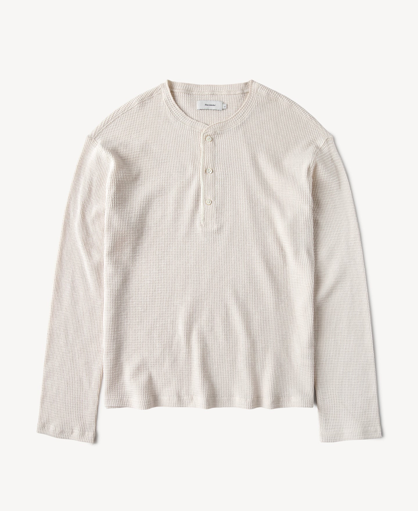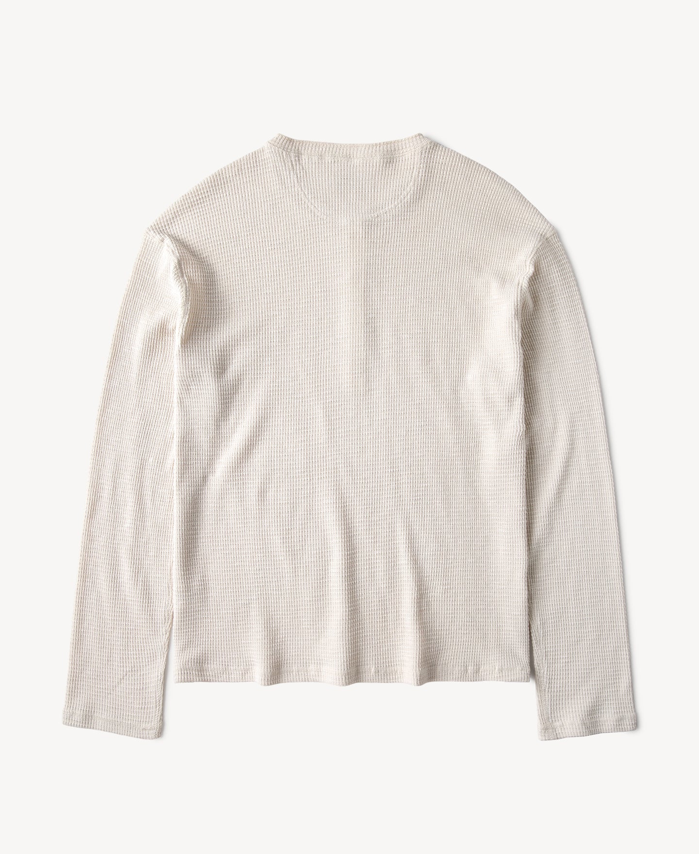 Honeycomb Waffle Knit Henley Long Sleeve T-Shirt