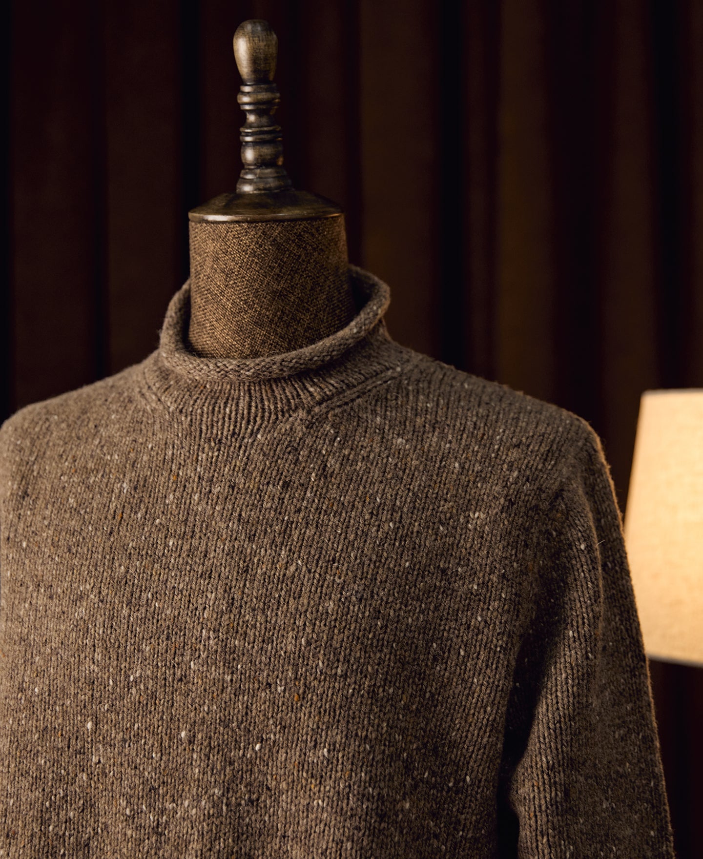Inspired by classic fishermen’s sweaters from the early 20th century, this piece traces its origins to the maritime traditions where knitwear served as essential protection against wind and cold at sea. The style later evolved into a timeless staple embraced by casual and Ivy style alike.