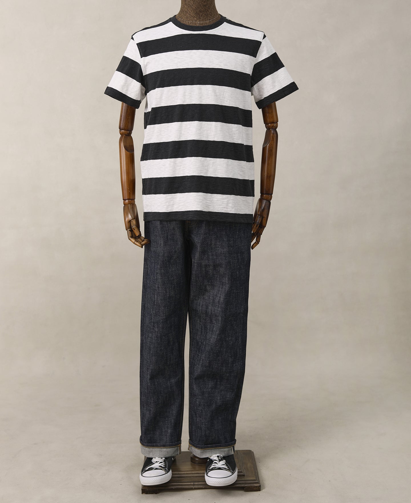 Inspired by those made in the 1950s, this thick stripe tee is made from a 280 GSM heavyweight slub cotton jersey, breathable, soft and comfortable.This style of T-shirt was favored by American motorcycle riders in the middle of the last century.